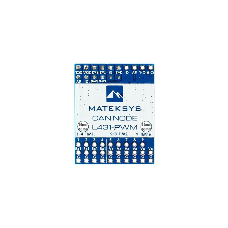 Conçu autour d’un MCU STM32L431xC doté de 256 kB de mémoire flash, il assure une communication fluide via un seul canal CAN utilisant le protocole DroneCAN. Il fournit jusqu’à 9 sorties PWM, dont 8 DShot, pour une flexibilité maximale dans vos branchements.