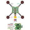 It is equipped with a connector to connect a VTX HD without soldering. Indicator LEDs also allow visual debugging.