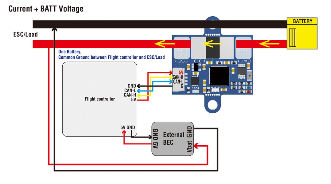 Any flight controller that supports the DroneCAN protocol will be able to easily get accurate current and voltage readings via CAN.