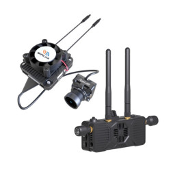 Linked to a Runcam camera based on a Sony IMX415 sensor, it delivers meticulously calibrated image quality for crisp, detailed visuals across its 160° FOV. You'll also find a component, a Wi-Fi module with a fan on top and two antennas.