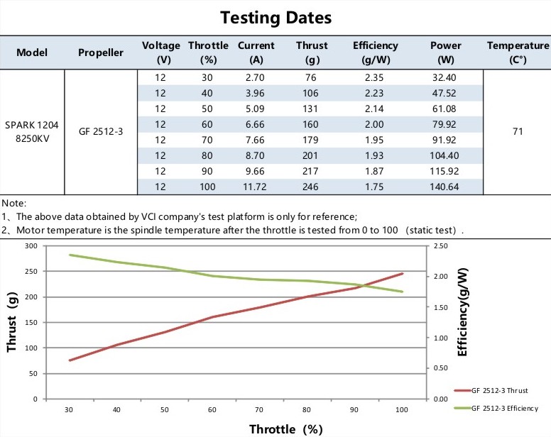 The VCI Spark 1204 have a 1.5mm pressure shaft and will be perfect combined with the Gemfan 2512-3 propellers.