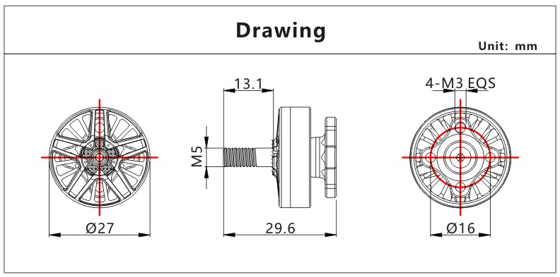 The VCI Spark 2203.4 have a M5 nut shaft and will be perfect combined with the Gemfan D90-3 propellers.