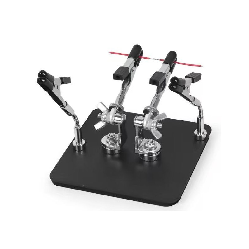 La base est magnetique et dotée d’un revêtement antidérapant, garantissant une excellente stabilité même sur surfaces lisses et délicates. Grâce à ses quatre bras flexibles, vous pouvez ajuster chaque bras à l’angle et à la hauteur souhaités pour maintenir fermement vos composants pendant que vous soudez, percez, ou assemblez.