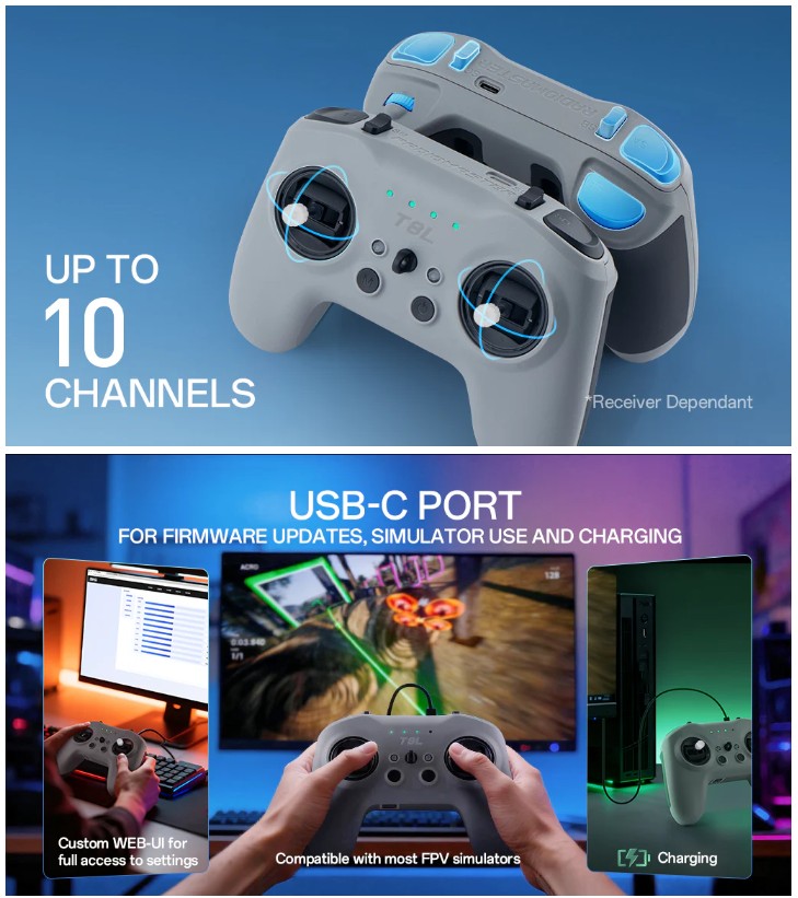 En résumé, la radio T8L ELRS combine portabilité, simplicité d’utilisation et technicité performante. Elle s’adresse aussi bien aux pilotes débutants qu’à ceux qui recherchent une radio de secours efficace, compacte et fiable.